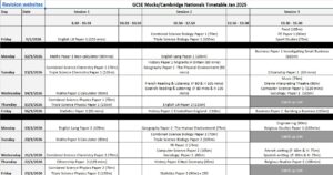 Mock and revision information for Year 11